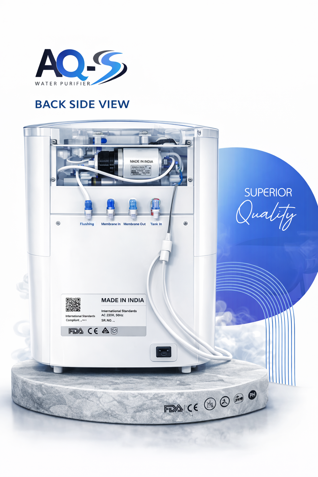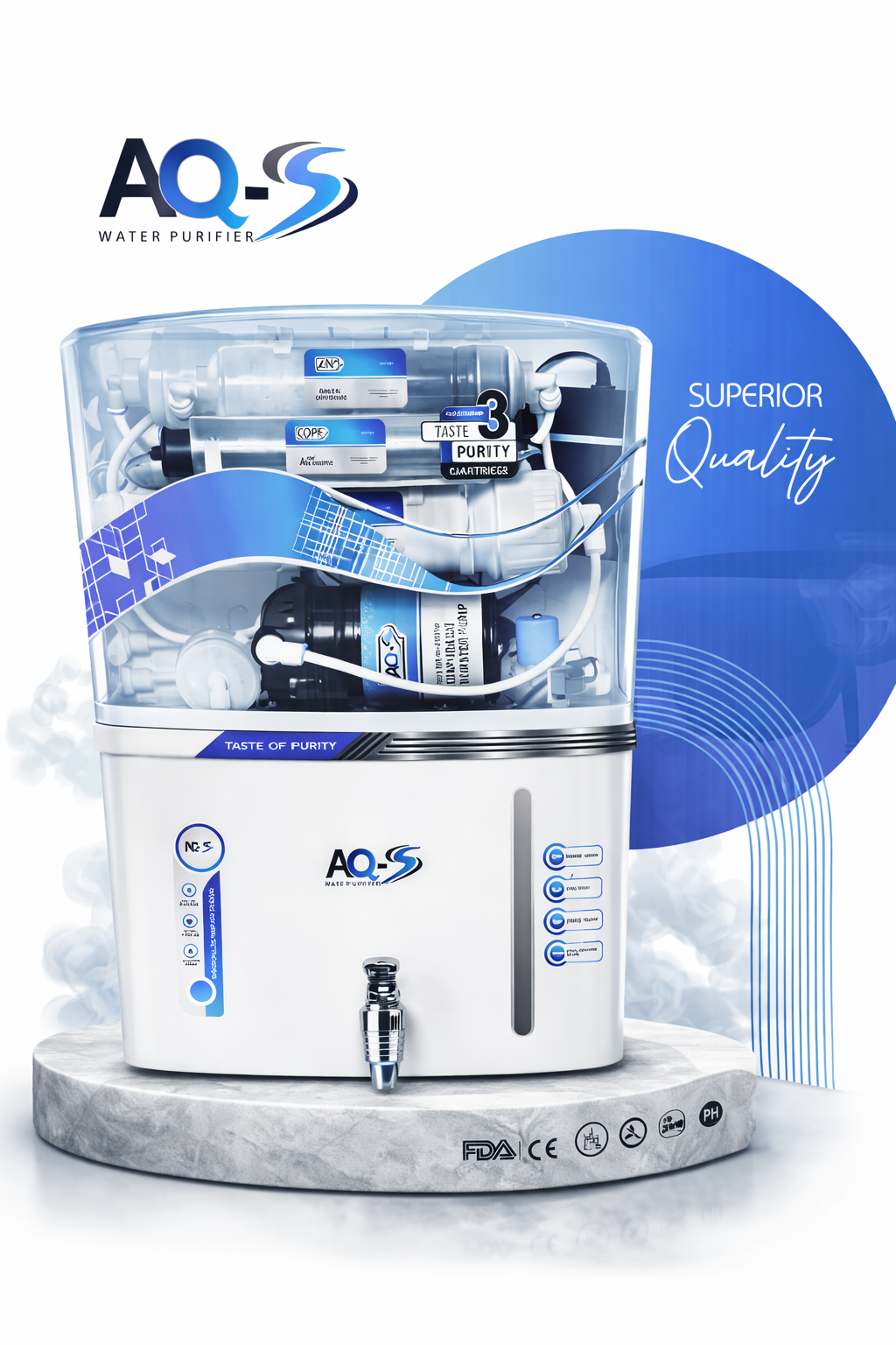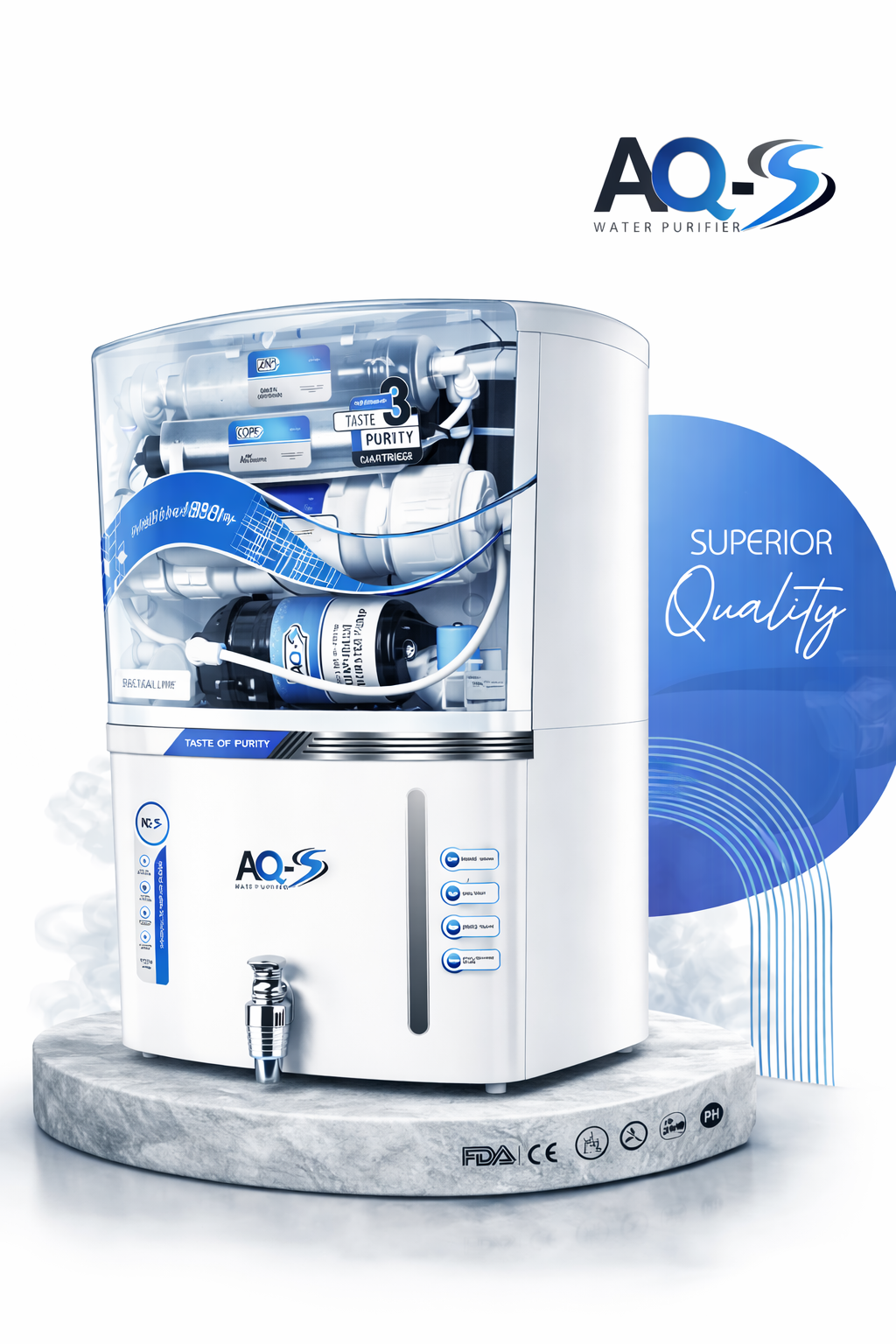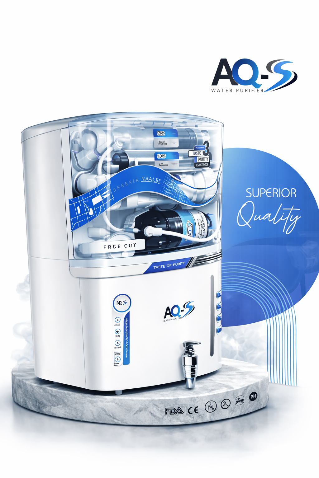 AQ-S 12L RO + UV + UF + TDS Control Water Purifier is designed to provide safe and healthy drinking water for your family. Equipped with advanced multi-stage purification technology, this system effectively removes dissolved impurities, harmful chemicals, bacteria, and viruses from water.